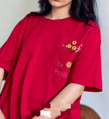 تیشرت لانگ زنانه تک جیب گلدوزی شده برندپاپ تین نخپنبه سوپر