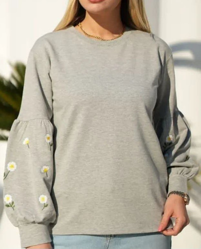 بلوز آستین بلند گلدوزی ۲ چین گلکسی گرم بالا