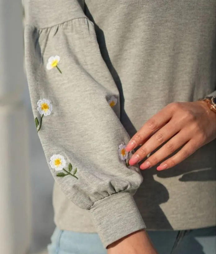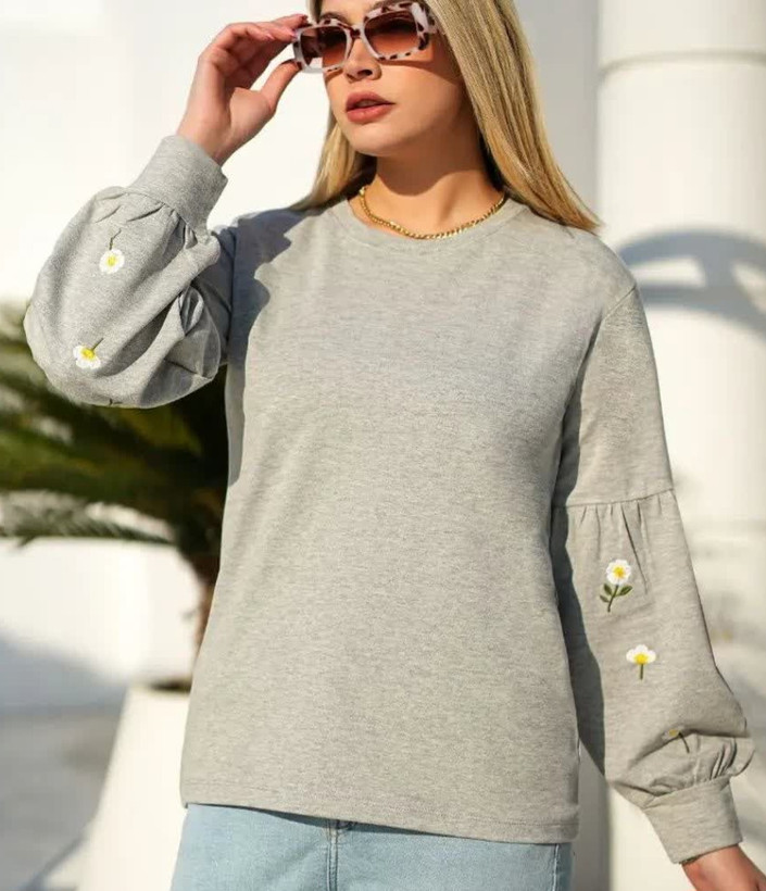 بلوز آستین بلند گلدوزی ۲ چین گلکسی گرم بالا